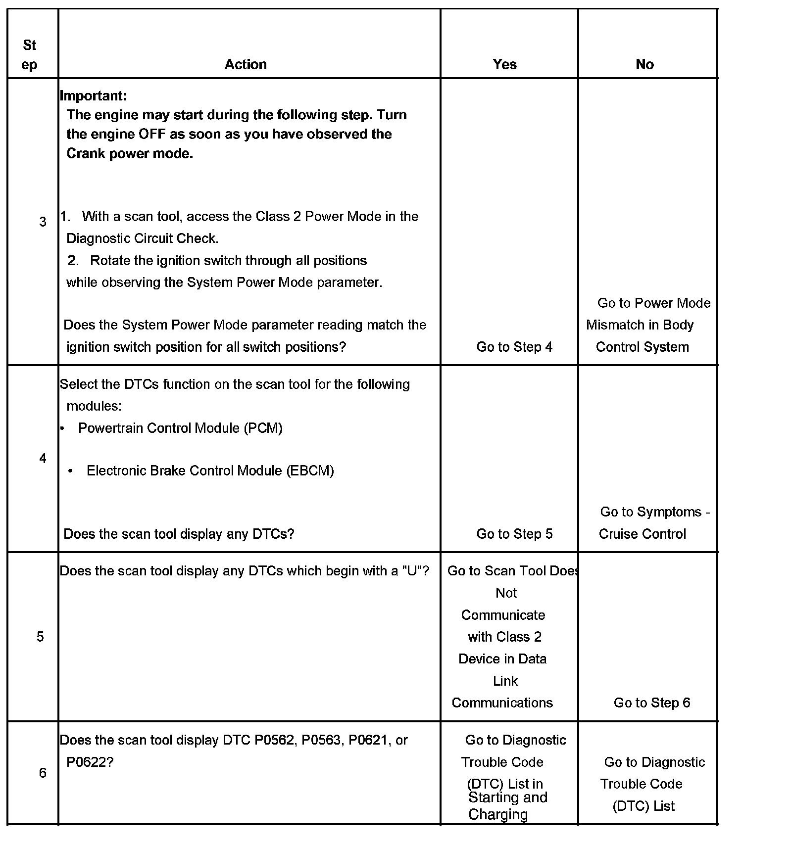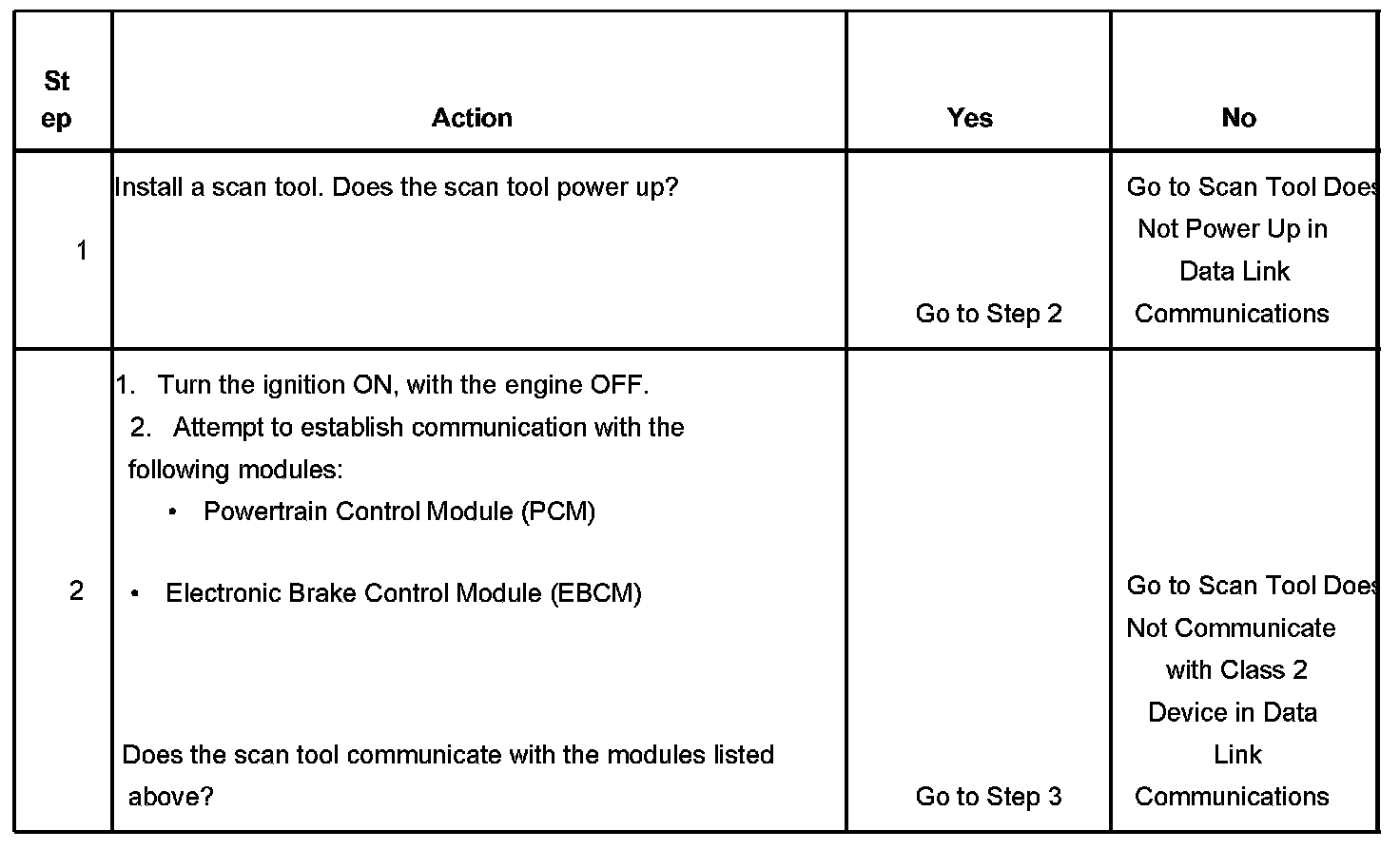 2. Lack of communication may be due to a malfunction in the class 2 serial data circuit. The specified procedure will determine the particular condition.