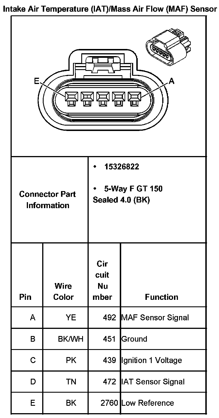 Intake Air Temperature (IAT)/Mass Air Flow (MAF) Sensor: