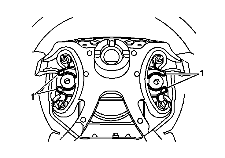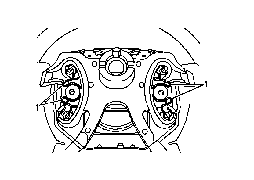 5. Push the inflatable restraint module into the steering wheel to engage and latch the leaf spring fasteners (1).