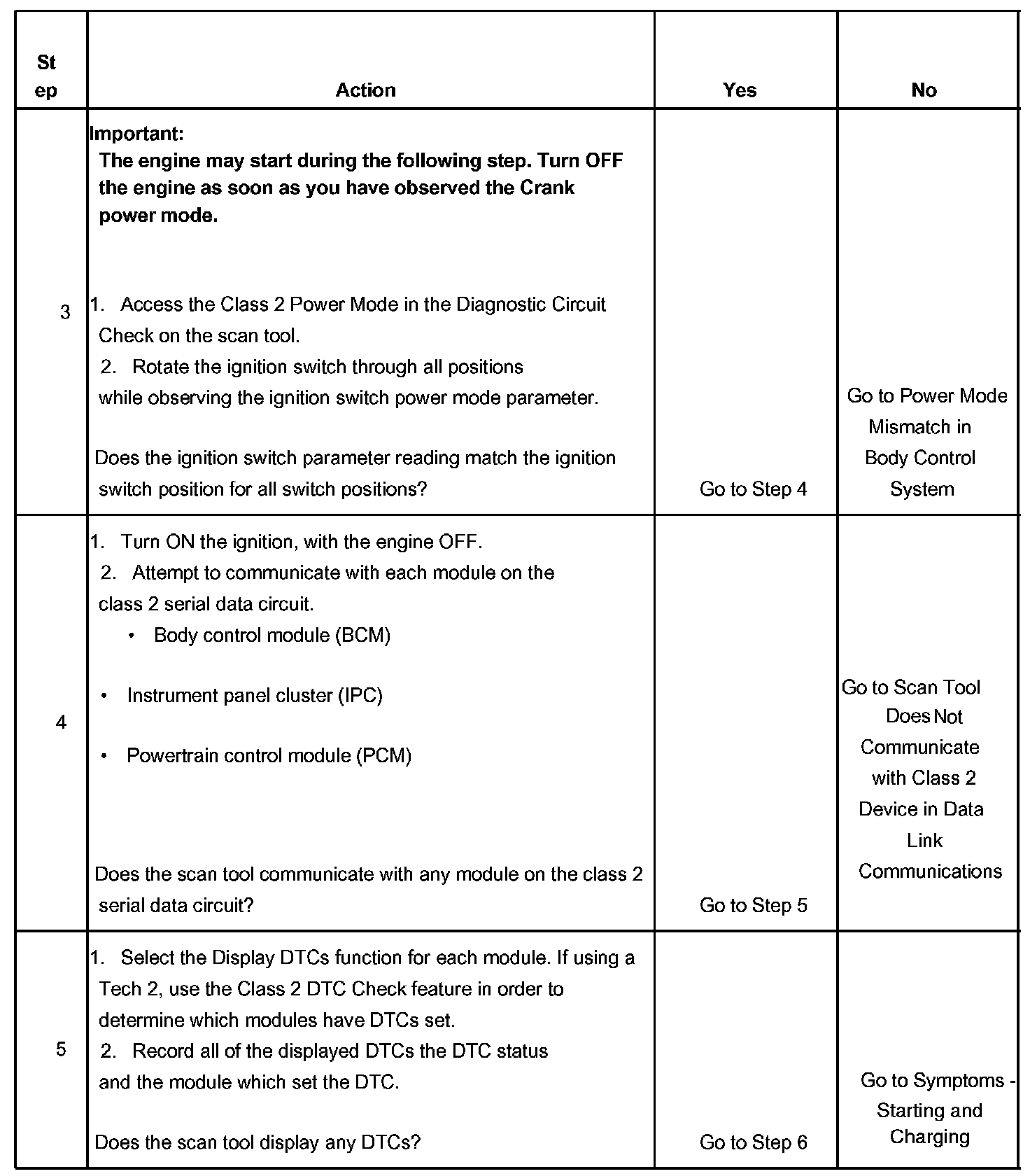4. Lack of communication may be due to a partial malfunction of the class 2 serial data circuit or due to a total malfunction of the class 2 serial data circuit.The specified procedure will determine the particular condition.