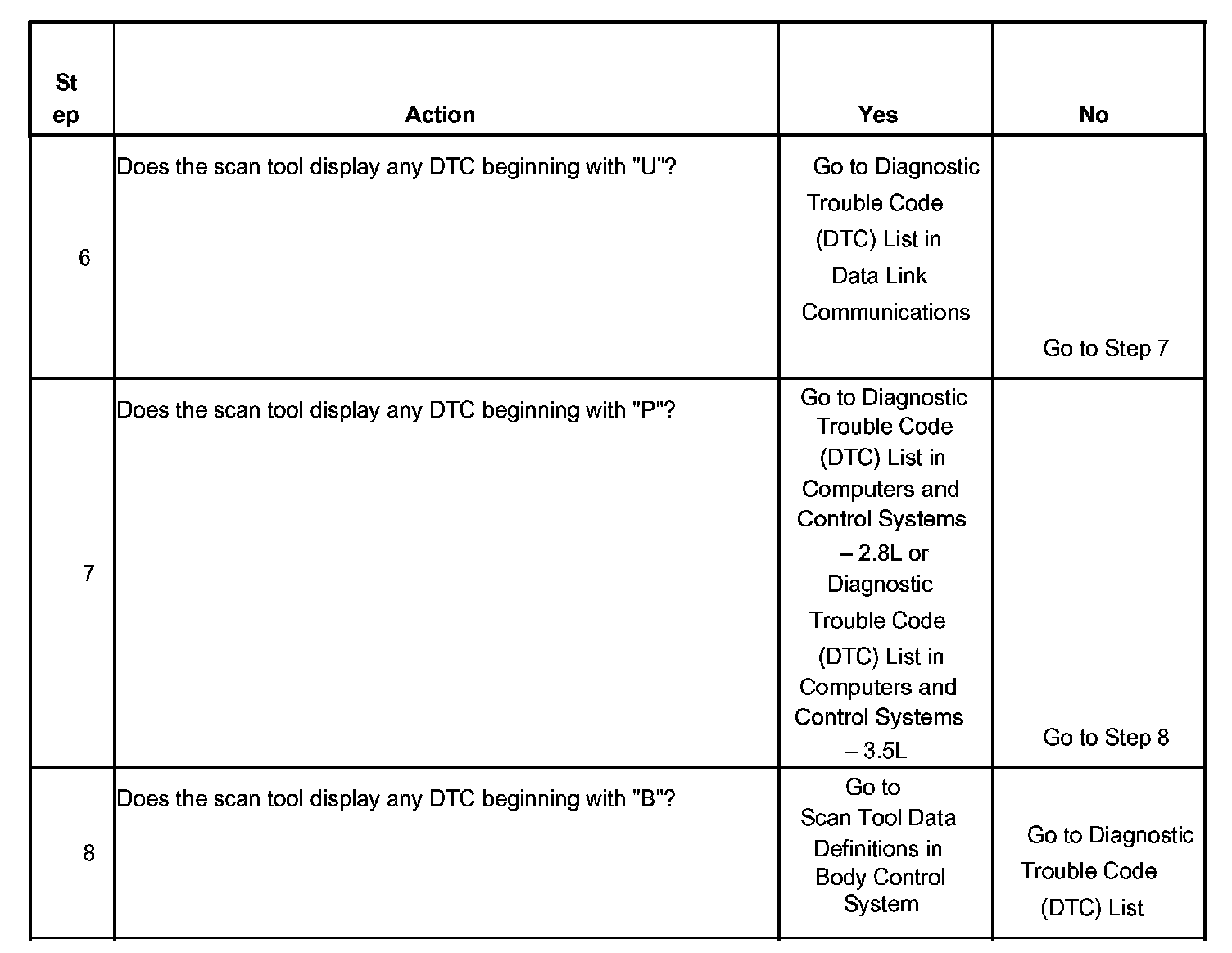 6. The presence of DTCs which begin with "U" indicate some other module is not communicating. The specified procedure will compile all the available information before tests are performed.