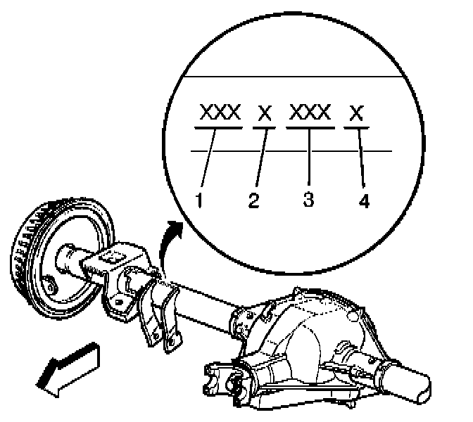 Rear axle identification information is stamped on the right side axle tube near the differential housing. The information includes the following: