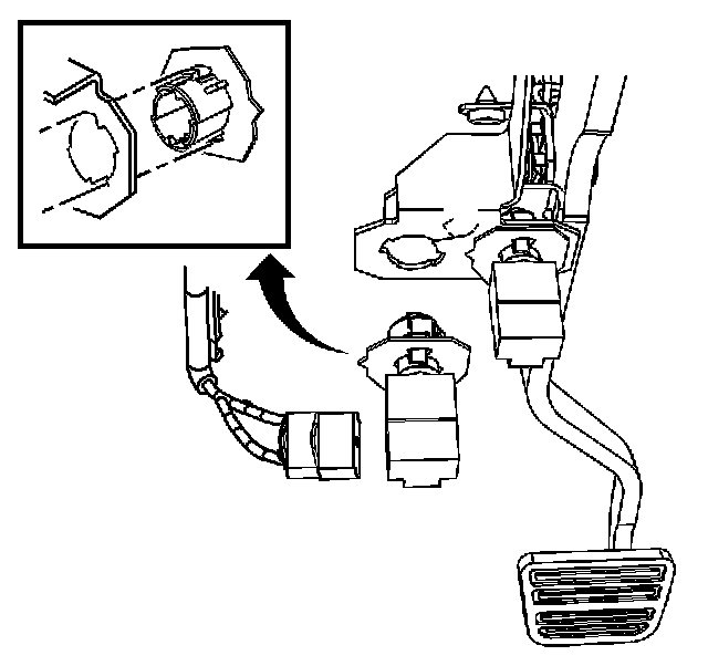 3. While holding the brake pedal in position rearward, push the switch inward fully until the switch body contacts the brake pedal arm. At this point the plunger in the switch should be pushed in.