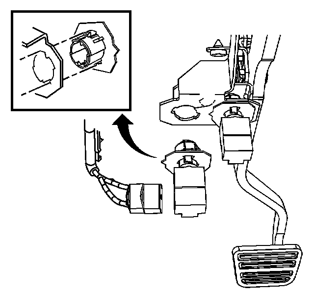 1. Slide only the cruise release switch retainer into the brake pedal bracket, until the locking tabs are fully engaged.