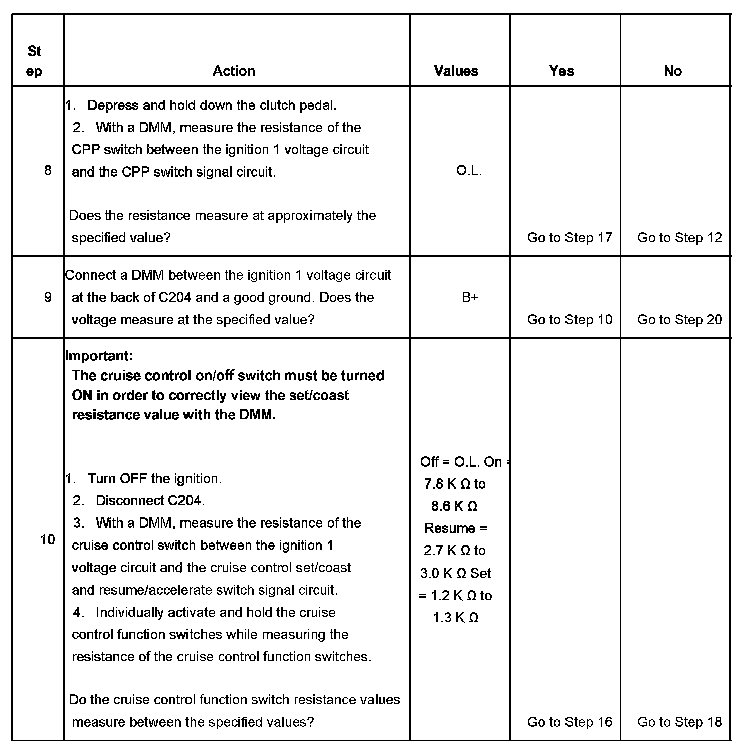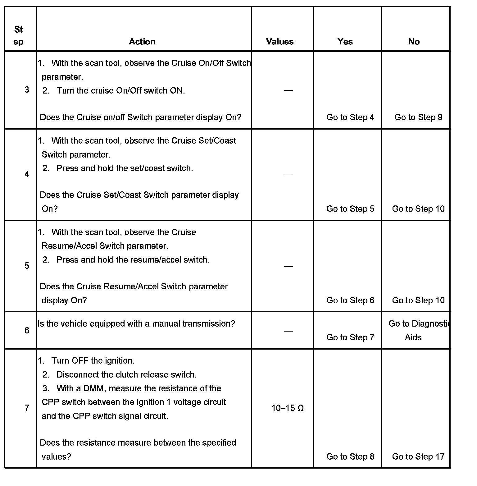 CRUISE CONTROL INOPERATIVE/MALFUNCTIONINGDIAGNOSTIC AIDS