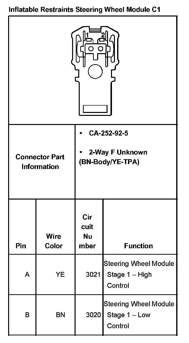 Inflatable Restraints Steering Wheel Module C1: