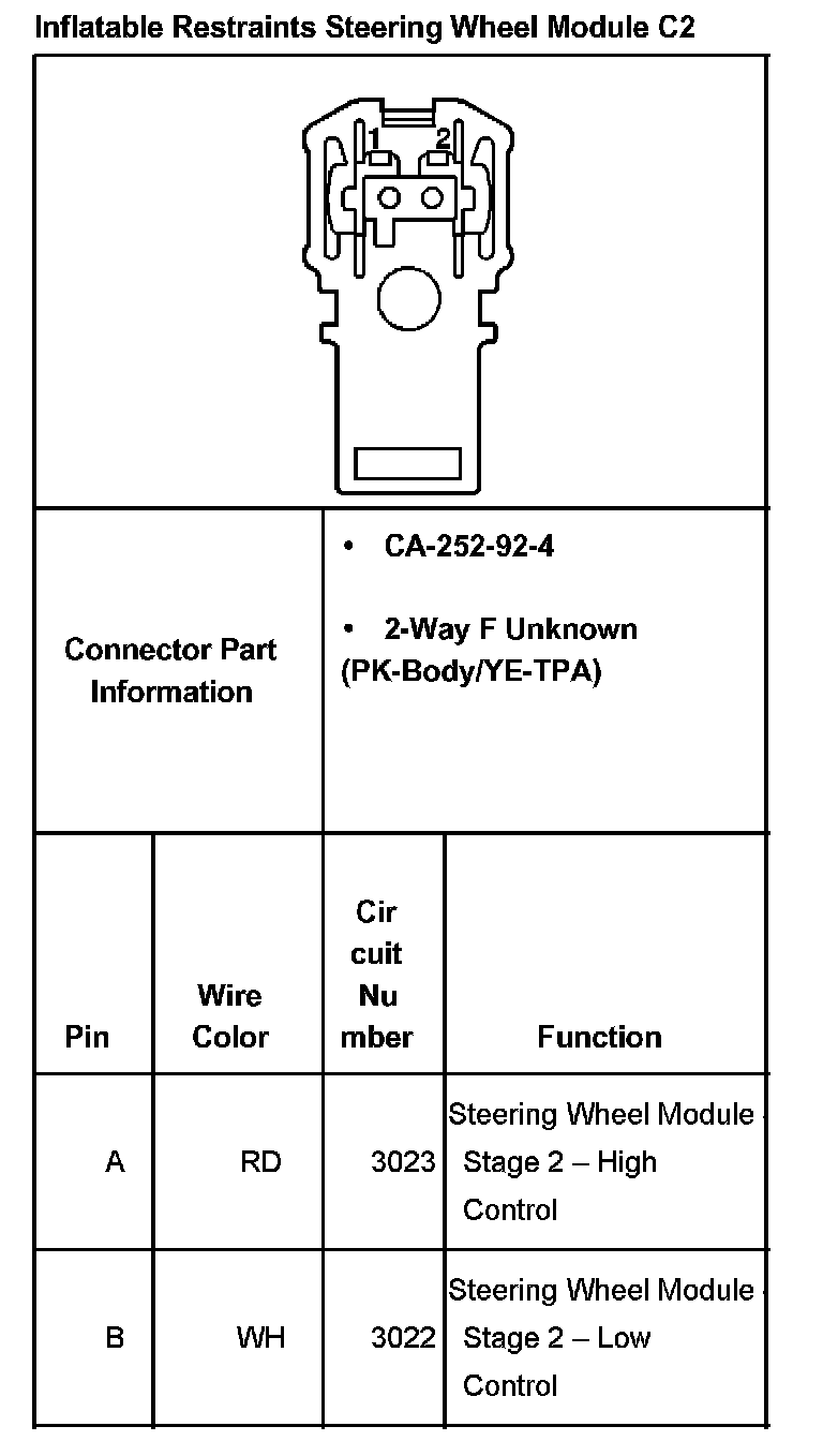 Inflatable Restraints Steering Wheel Module C2: