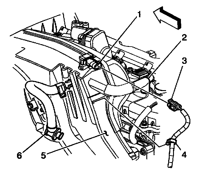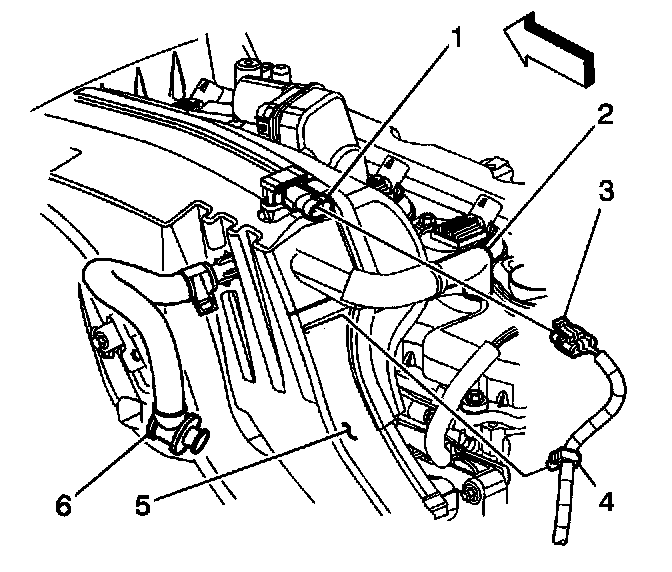6. Disconnect the MAP sensor wiring harness retainer (4) from the intake manifold (5).