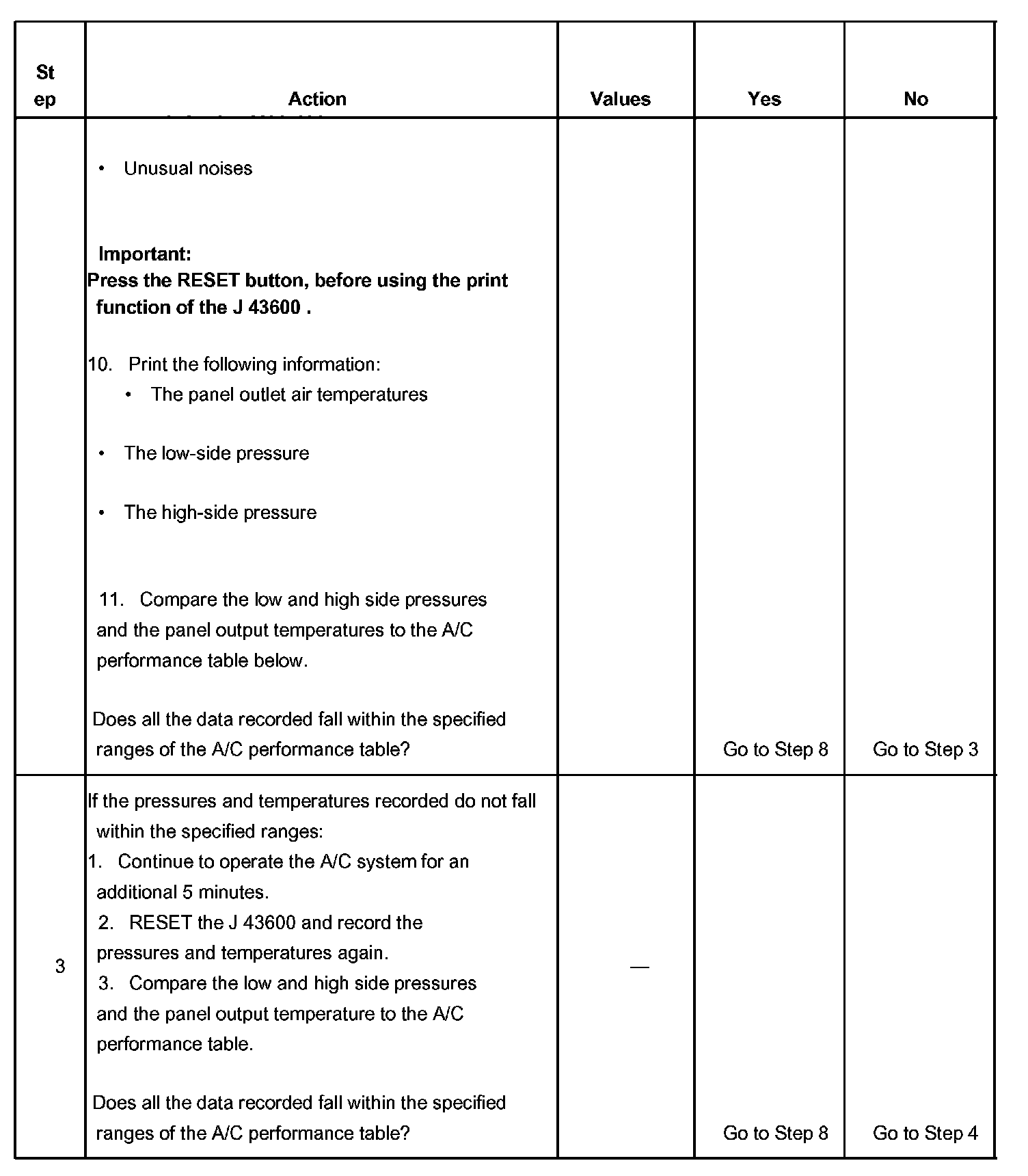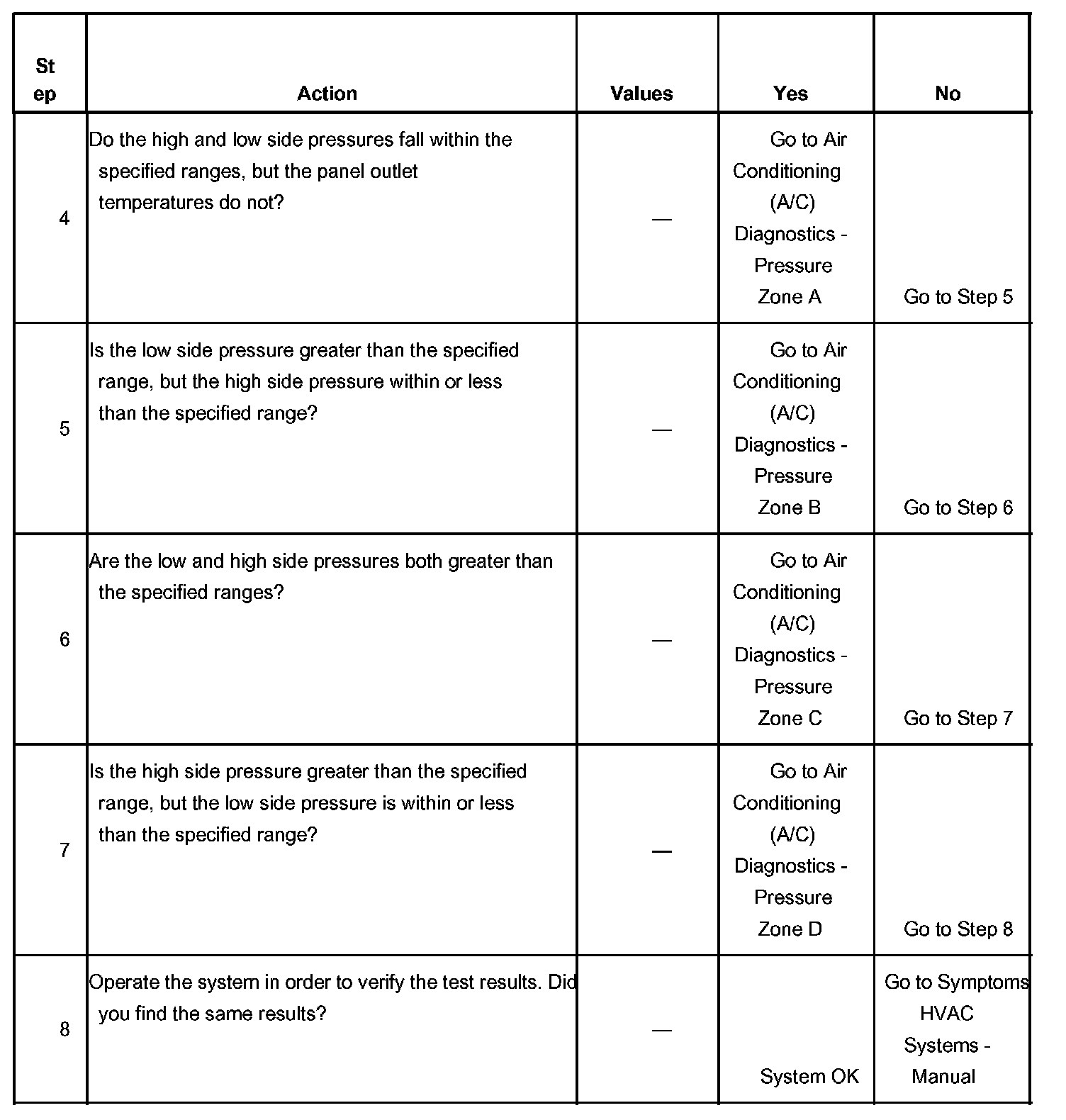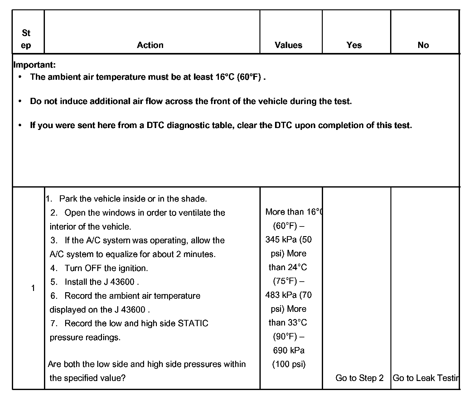 1. This step determines if the A/C system has at least the minimum refrigerant charge required to operate the system without damage.