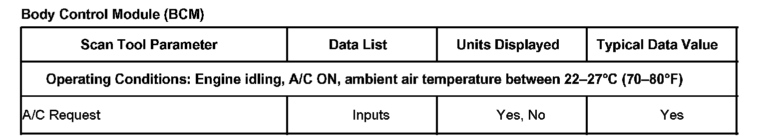 Scan Tool Normal Data Values - Body Control Module (BCM)