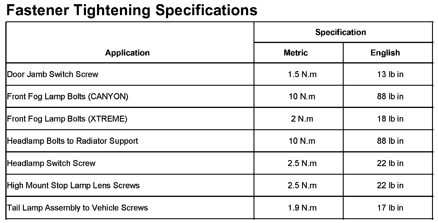 Lighting and Horns: Specifications