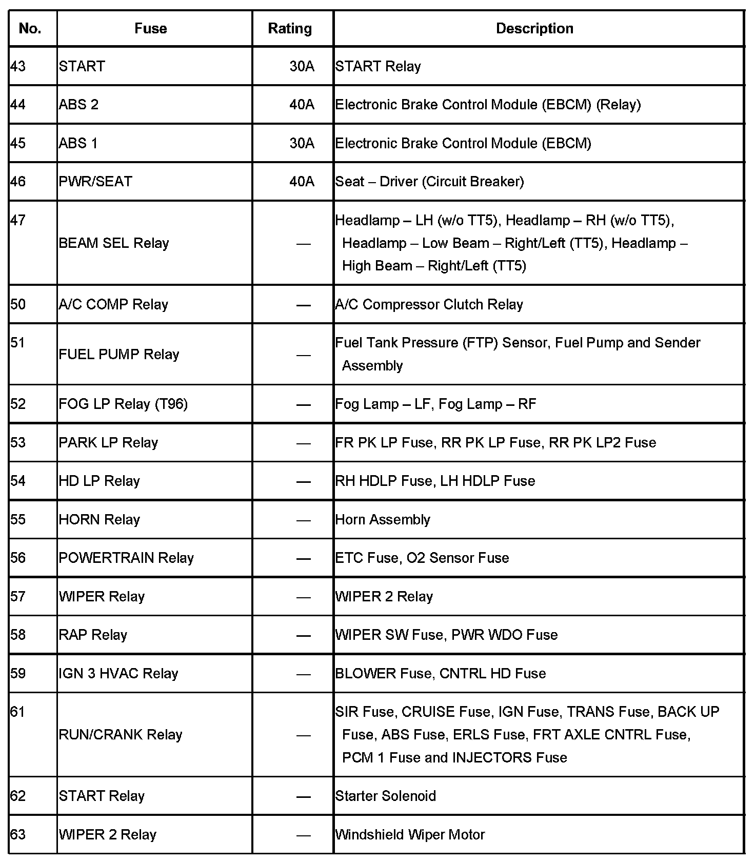 Application Table Part 1: