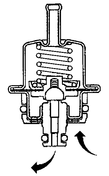 The fuel pressure regulator is a diaphragm relief valve. The diaphragm has fuel pressure on one side and regulator spring pressure on the other side. Fuel pressure is controlled by a pressure balance across the regulator. The fuel system pressure is constant. A software bias compensates the injector on-time based on the signal from the MAP sensor.