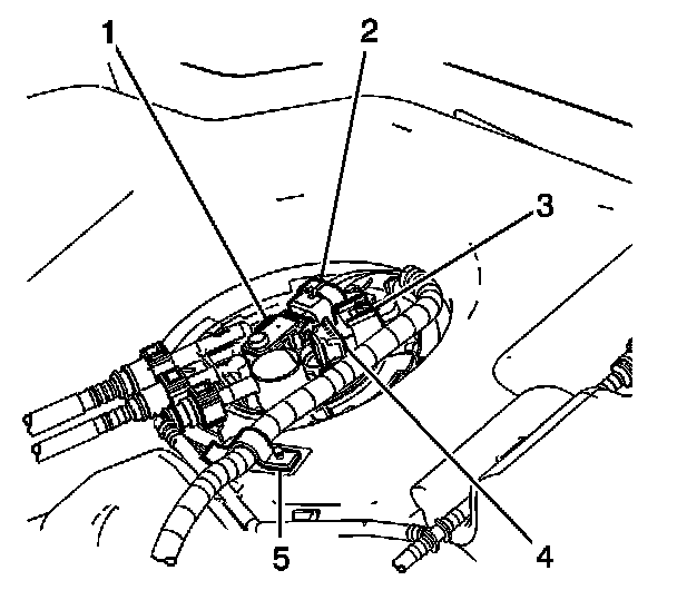 3. Disconnect the electrical connector (2) from the fuel tank pressure (FTP) sensor (1).