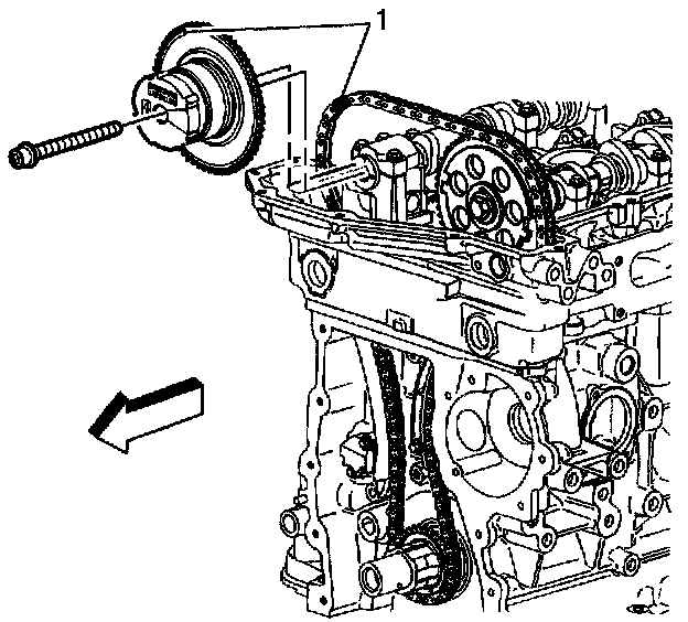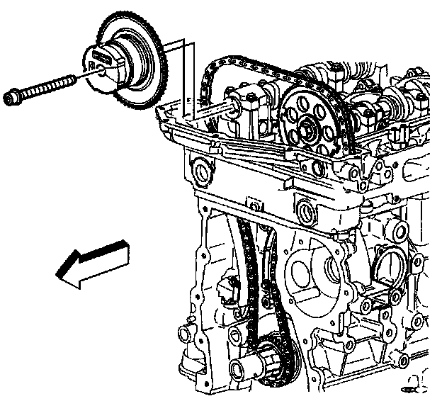 Notice: The camshaft actuator must be fully advanced during installation. Engine damage may occur if the camshaft actuator is not fully advanced.
