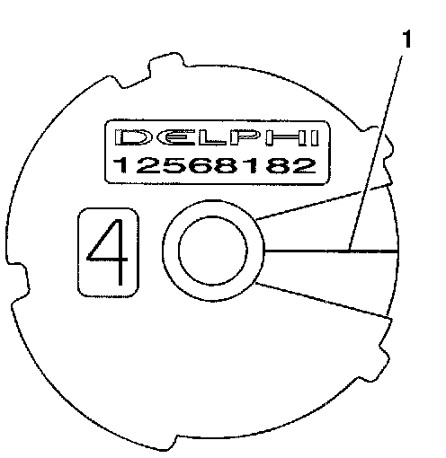 2. To perform an on-vehicle test, scribe or draw a line (1) on the camshaft position actuator, flush with the head, in the full advanced position.
