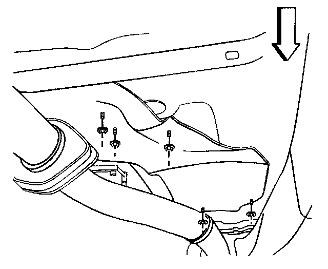 2. Remove the 5 nuts securing the heat shield to the floor panel.