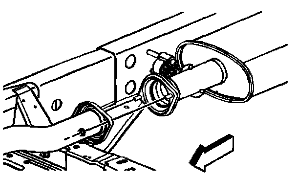 5. Position the muffler rearward enough to allow the studs located in the front to clear the catalytic converter pipe flange.