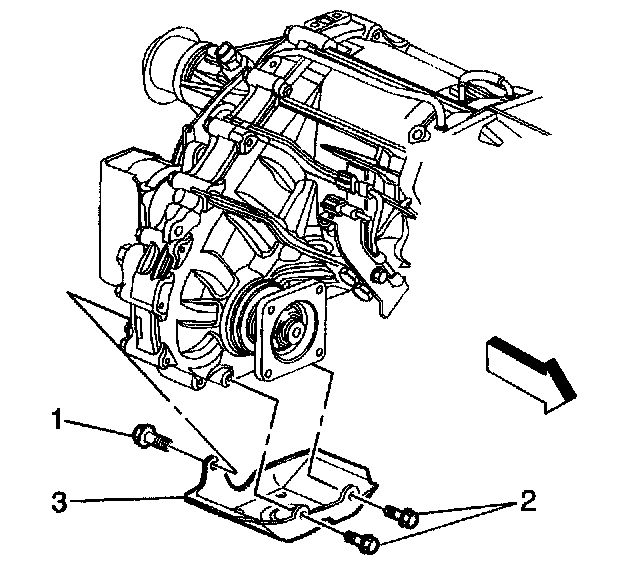 4. Remove the transfer case shield (3) front transfer case.