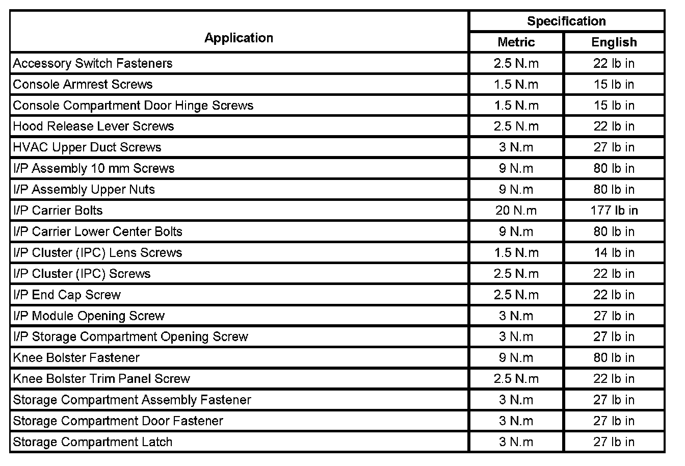 Fastener Tightening Specifications