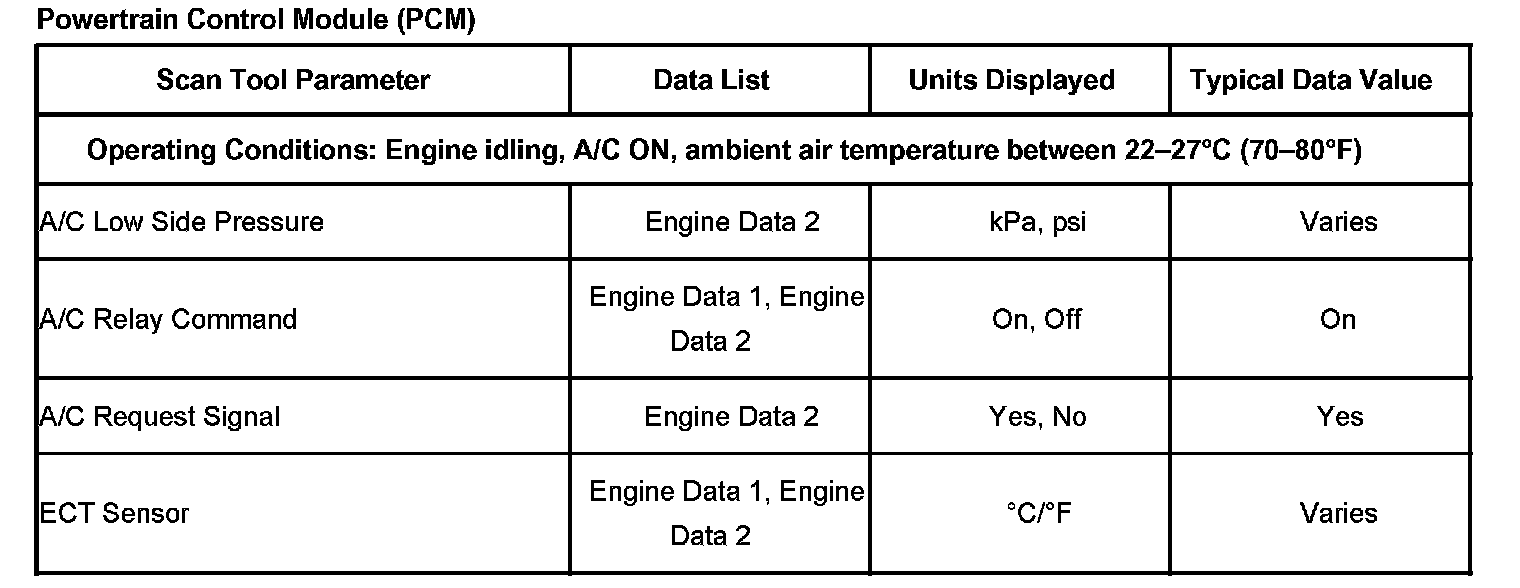 Scan Tool Data List - Powertrain Control Module (PCM):