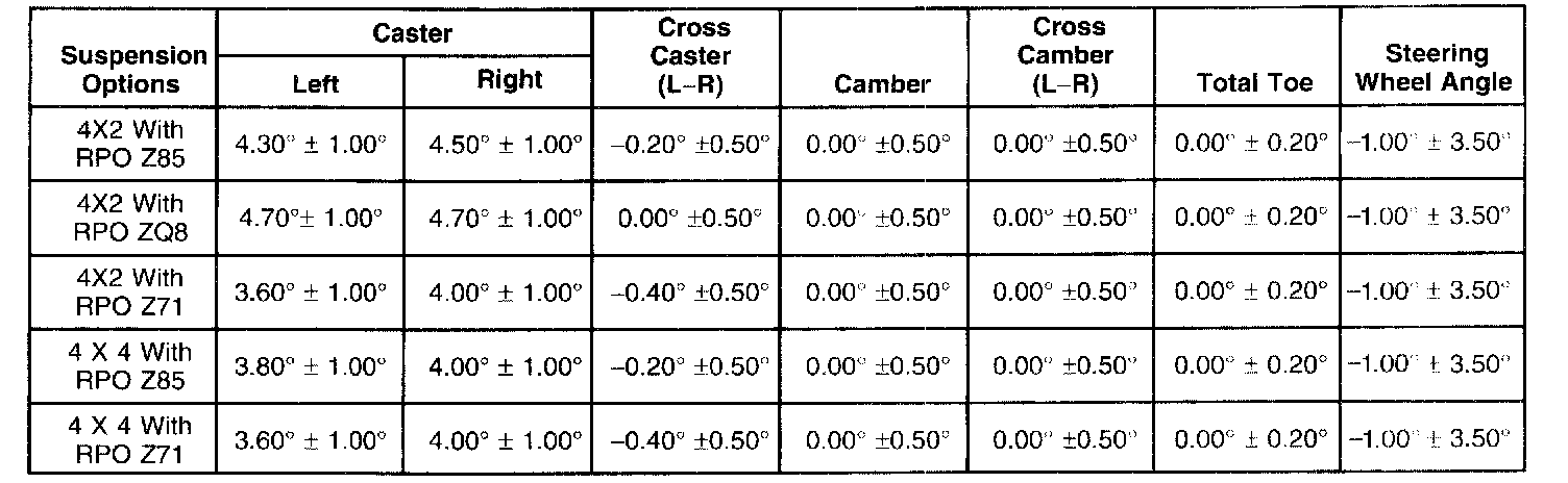Wheel Alignment Specifications
