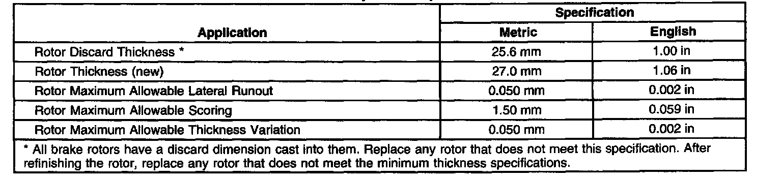 Disc Brake Component Specifications