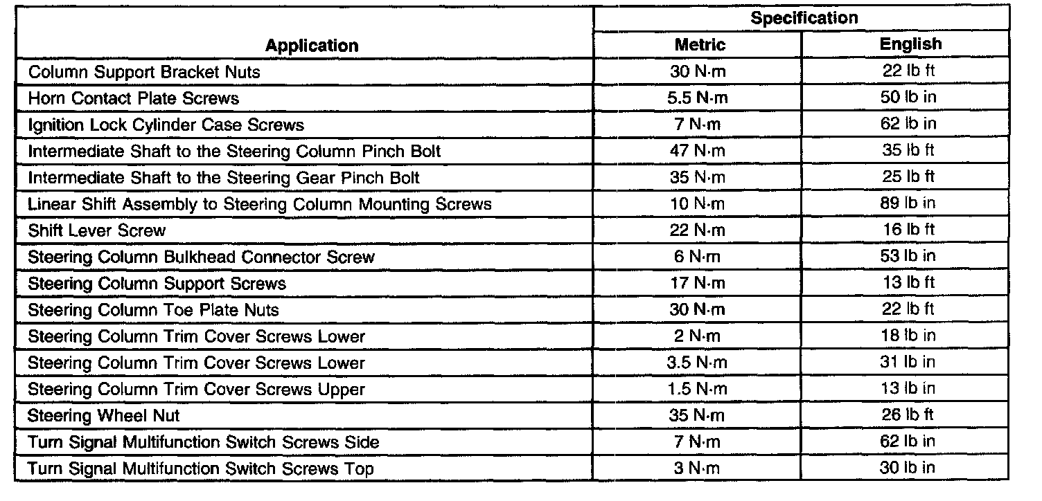 Steering Column: Specifications