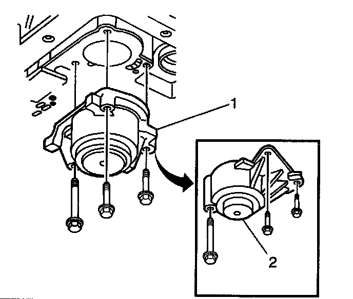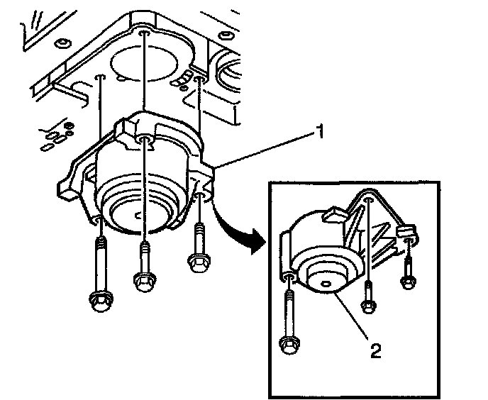 11. After installing the spacer plate support (2), look through the hole in the spacer plate to ensure that the checkball (1) has remained in the proper location (RWD only).
