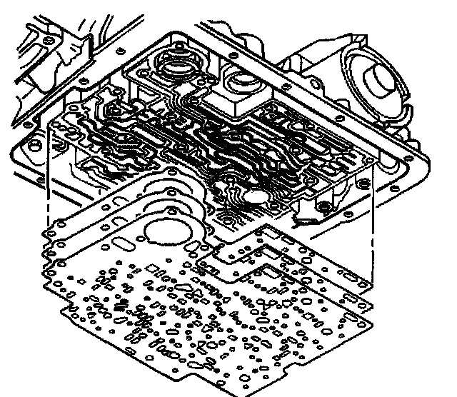 4. Install the spacer plate to transmission case gasket and the spacer plate to valve body gasket to the spacer plate; use J 36850 in order to retain the gaskets to the spacer plate.