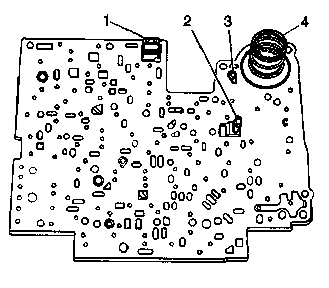 7. Place the 3-4 accumulator spring (4) on the spacer, plate.