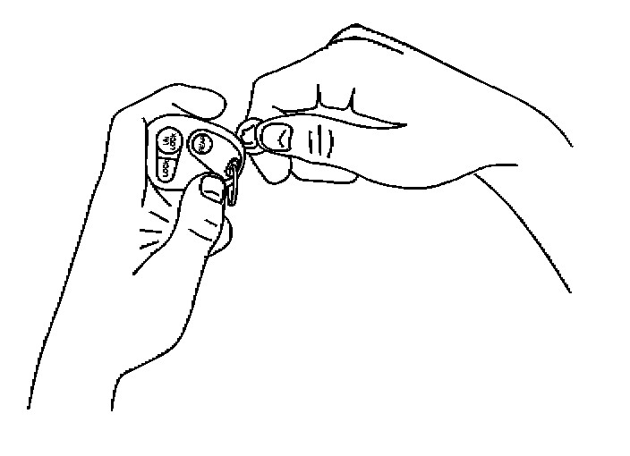 2. Insert a small coin between the 2 halves of the transmitter case at the slot provided near the key ring hole.