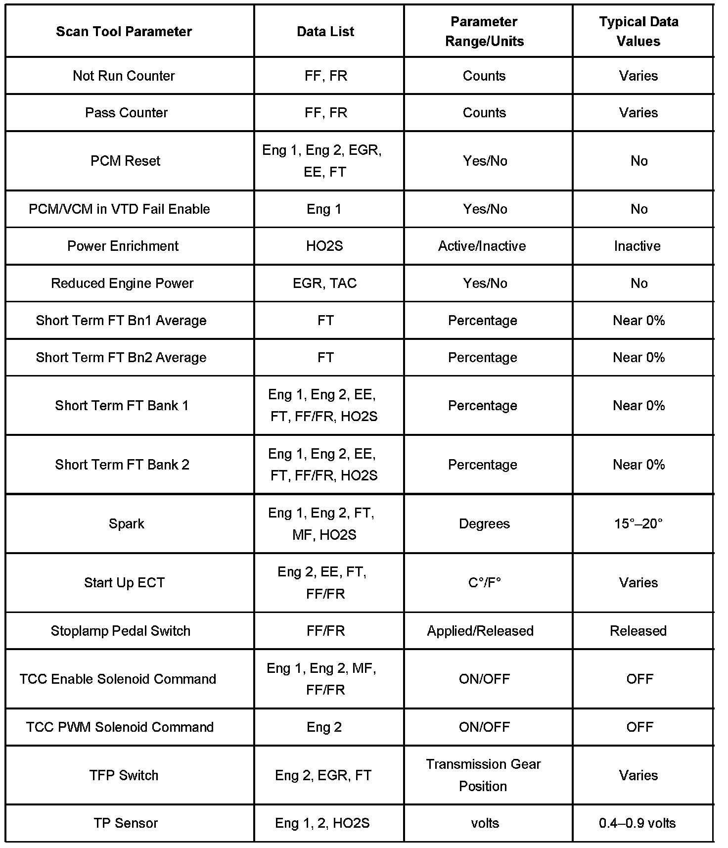 The Engine Scan Tool Data List contains all engine related parameters that are available on the scan tool. The list is arranged in alphabetical order. A given parameter may appear in any one of the data lists, and in some cases may appear more than once, or in more than one data list in order to group certain related parameters together.