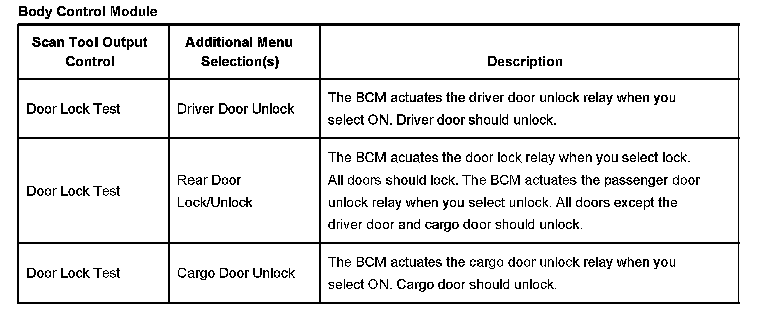Scan Tool Output Controls - Body Control Module: