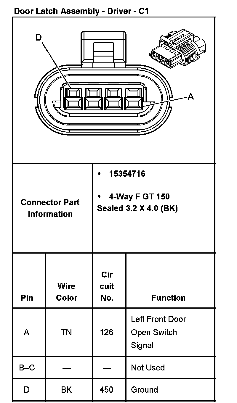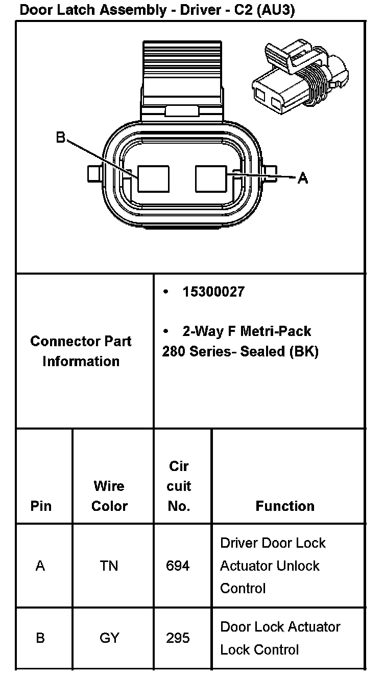 Door Latch Assembly - Driver - C2 (With RPO Code AU3):