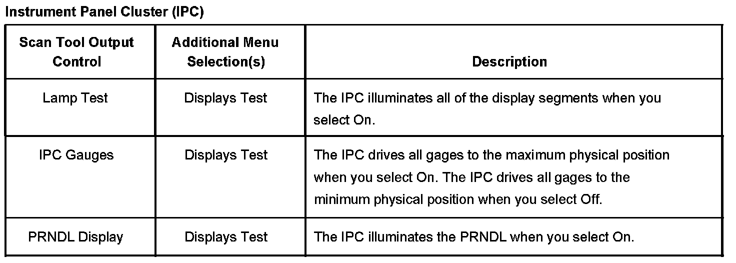 Scan Tool Output Controls - Instrument Panel Cluster (IPC):