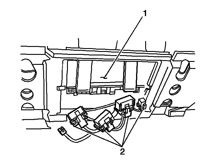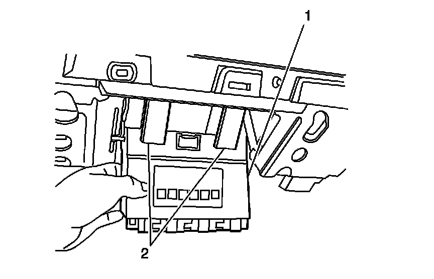 1. Install the BCM (1) into the bracket. Ensure the BCM (1) is engaged in the bracket, under the retaining tabs (2).