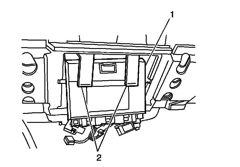3. Release the tabs (2) retaining the BCM (1) to the bracket.