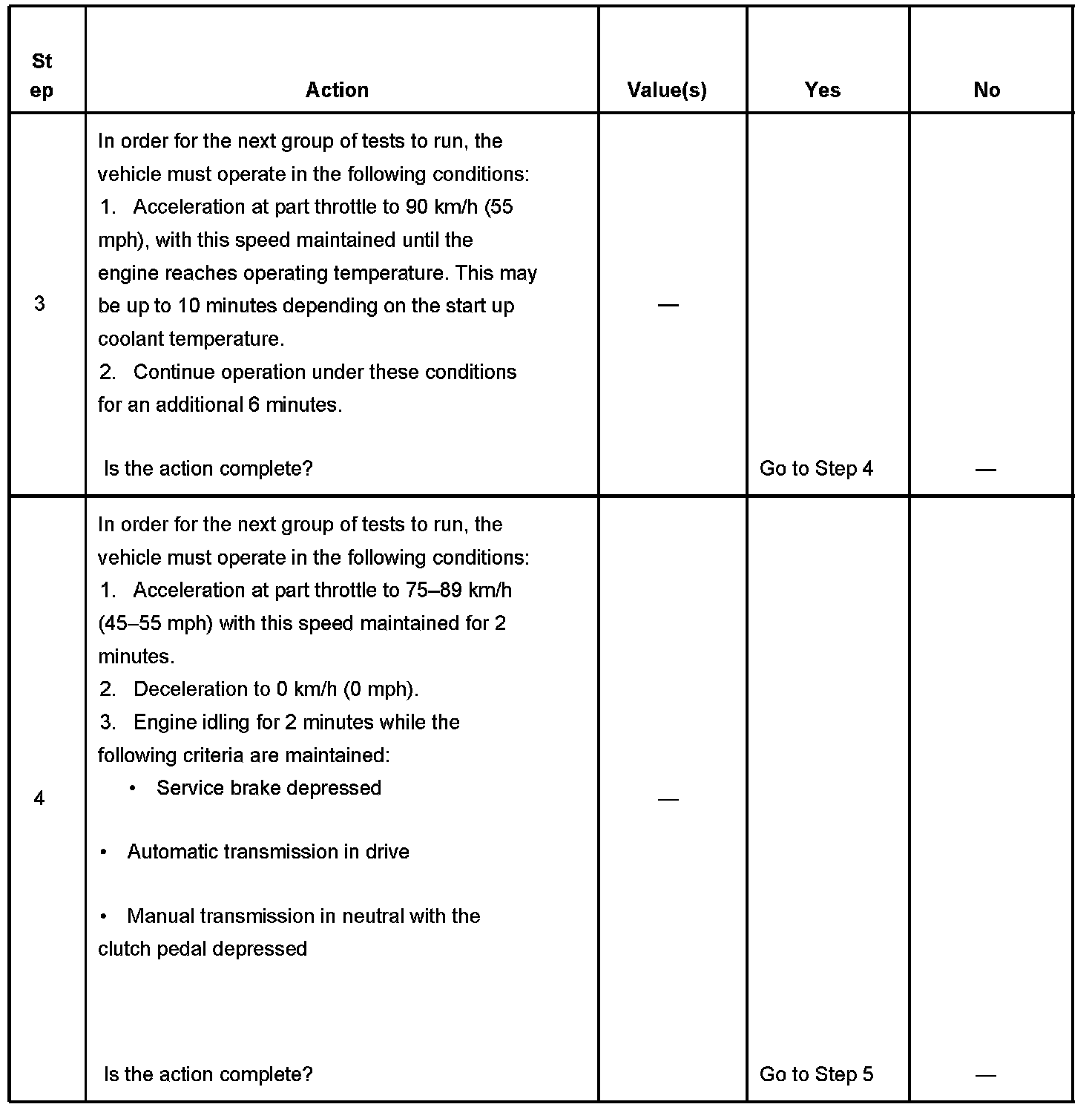 Rough road conditions may prevent some of the tests from running. Extreme high or low ambient temperatures may prevent tests such as for the heated oxygen sensor (HO2S) heater and the evaporative emission (EVAP) system from initiating. If a step is interrupted before completion, perform the remaining portion of the set procedures. Any portion of the set procedure that requires the engine at operating temperature may be repeated. This allows most of the diagnostics to run and the remaining tests can be performed using the individual System Set Procedures.