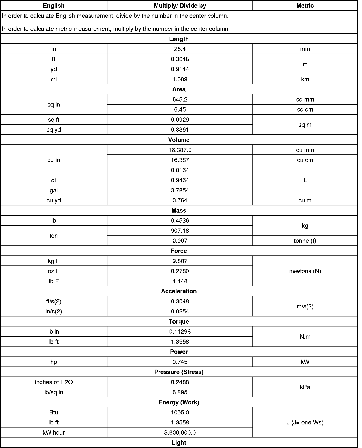 Conversion - English/Metric
