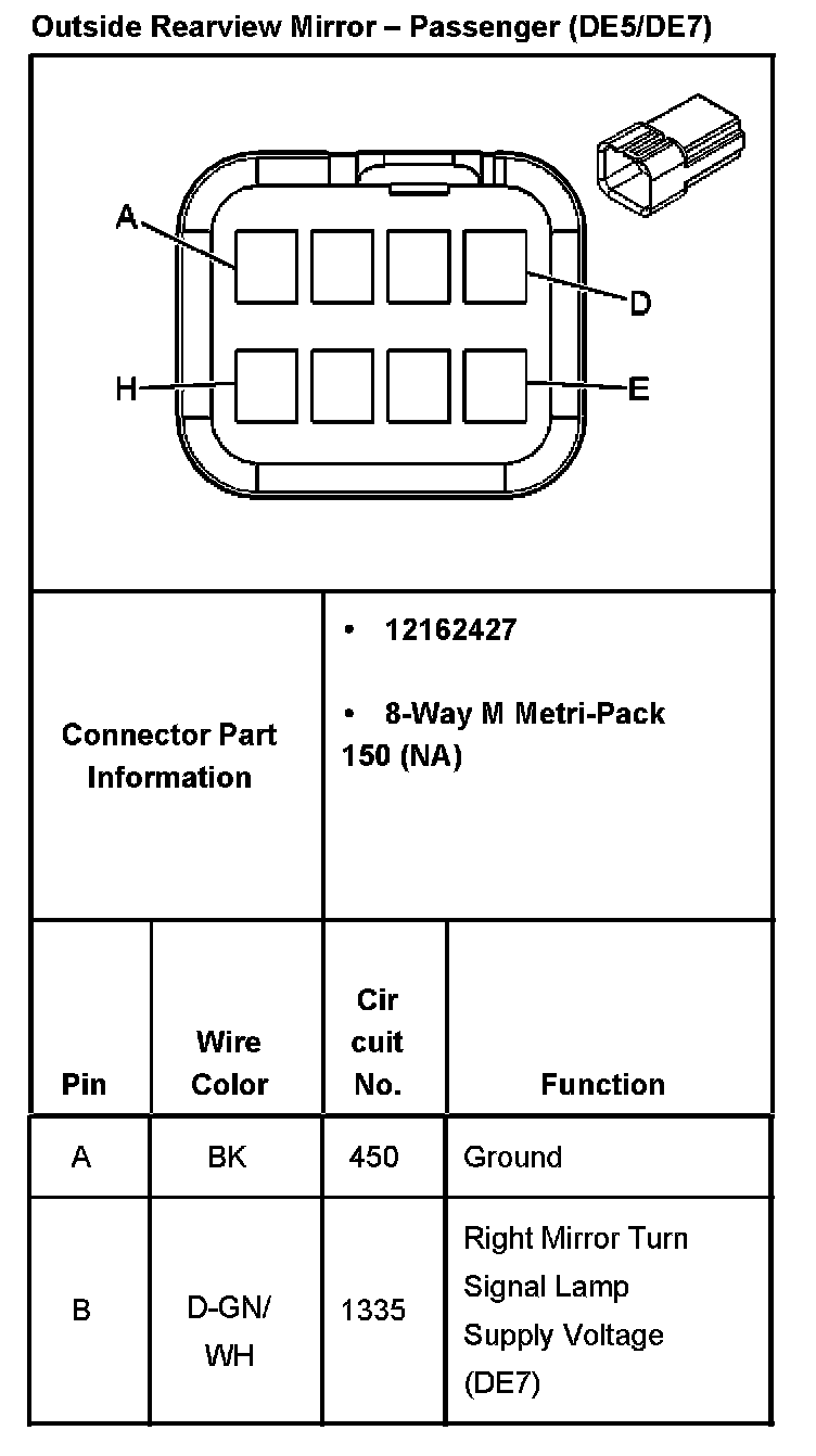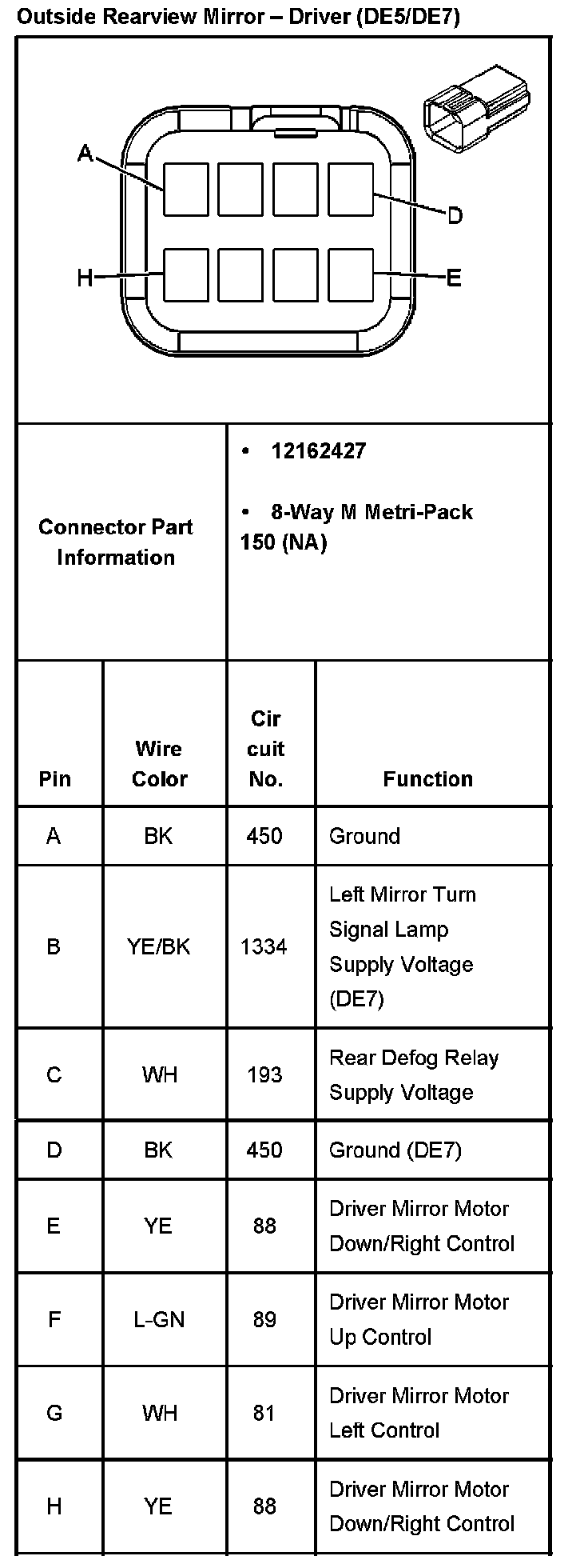 Outside Rearview Mirror - Driver (With RPO Code DE5/DE7):