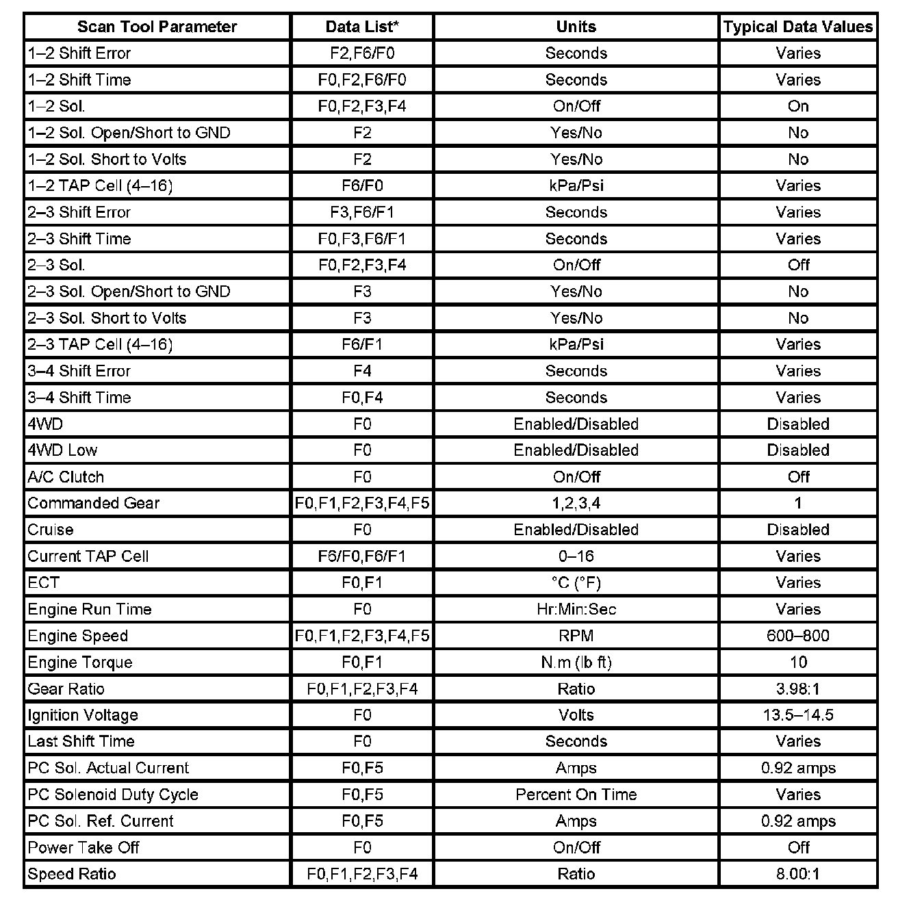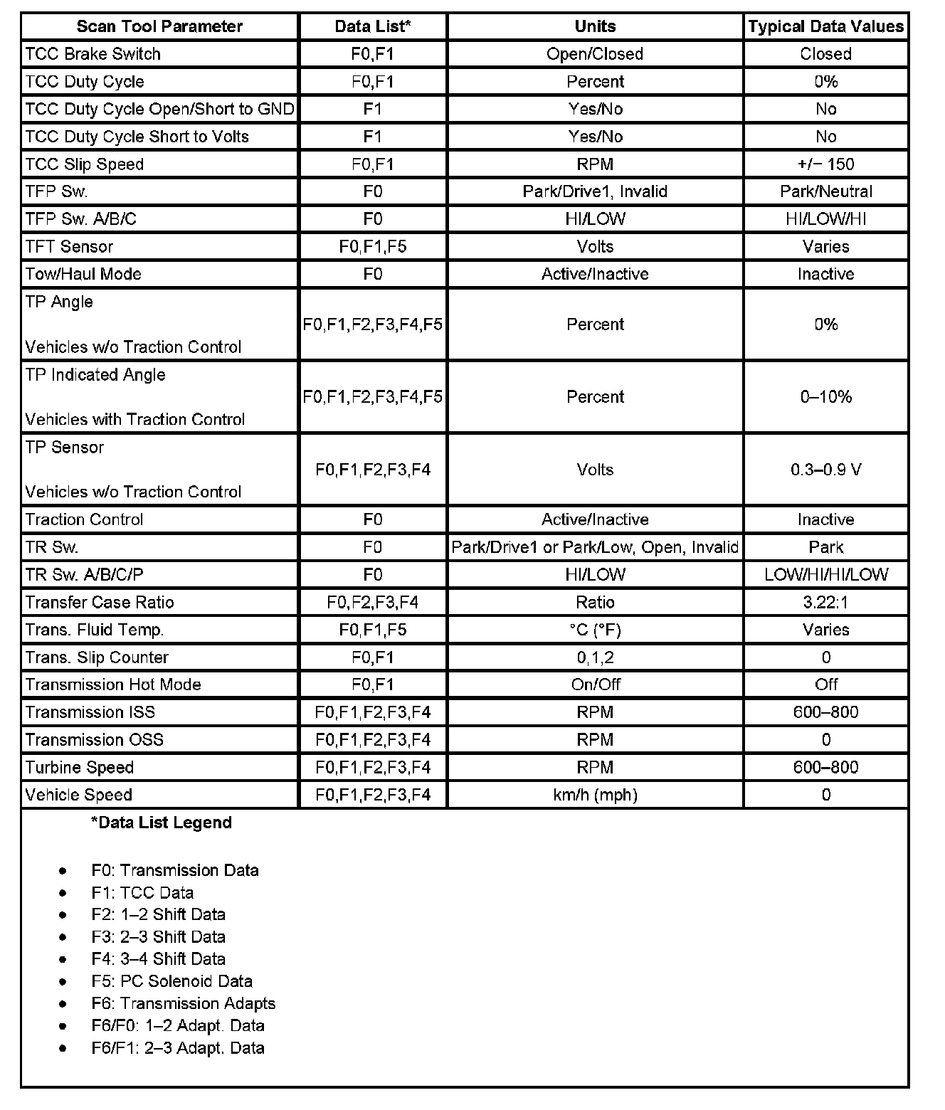 Only the parameters listed below are used in this manual for diagnosing. If a scan tool displays other parameters, the values are not recommended by General Motors for use in diagnosis.