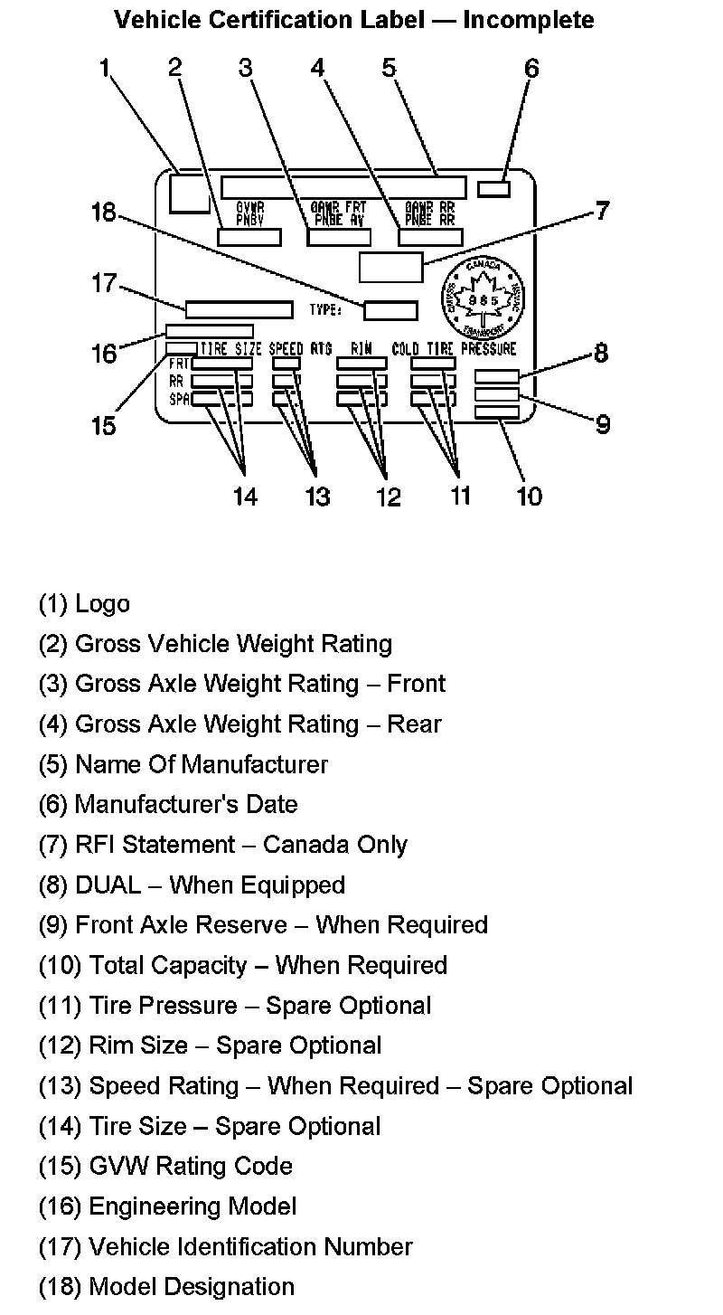 Vehicle Certification Label - Incomplete: