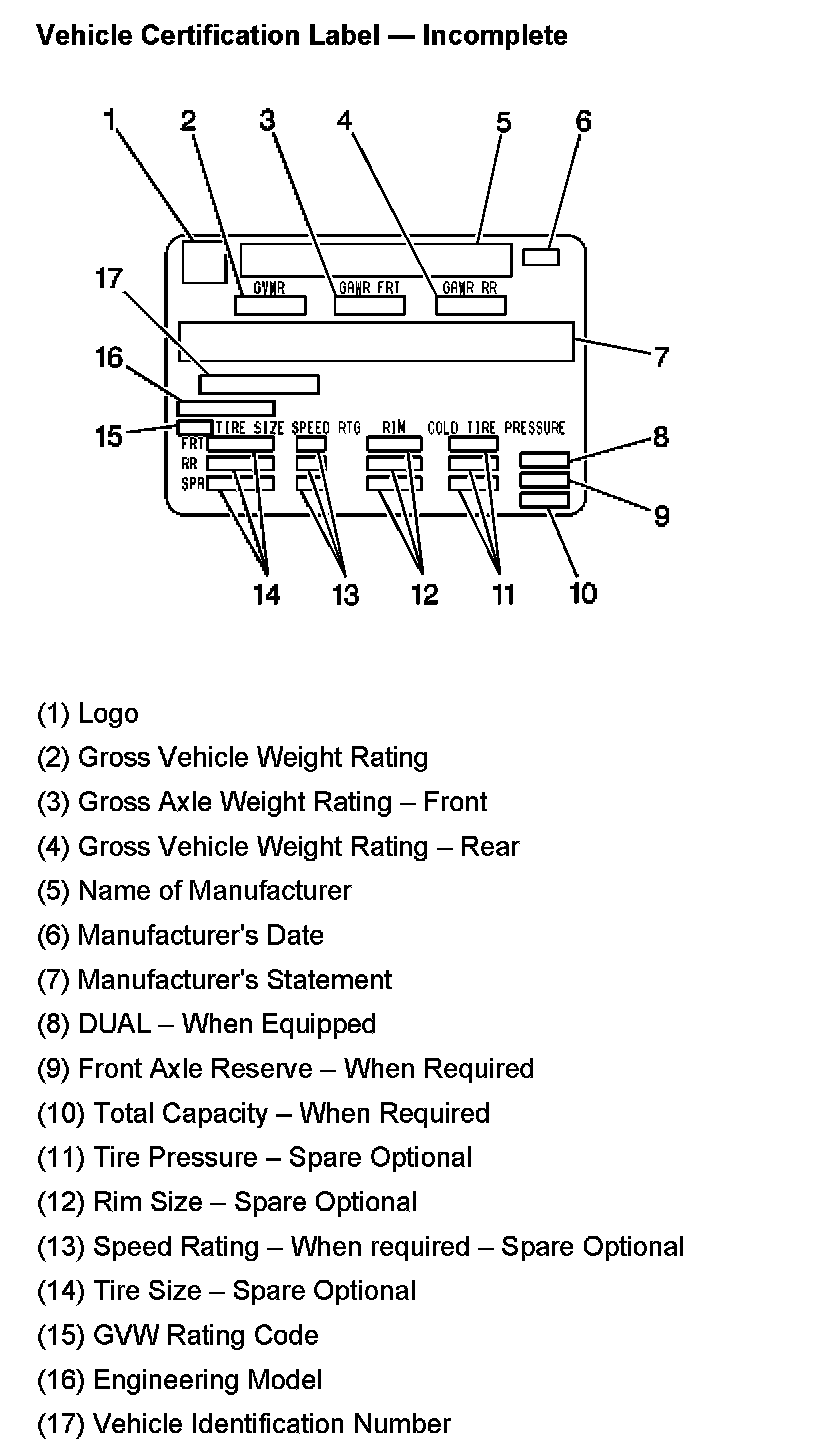 VEHICLE CERTIFICATION LABEL - INCOMPLETE