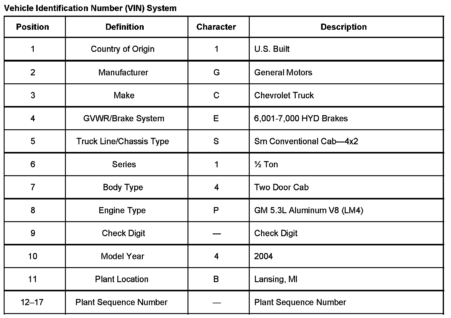 VEHICLE IDENTIFICATIONVehicle Identification Number (VIN) System: