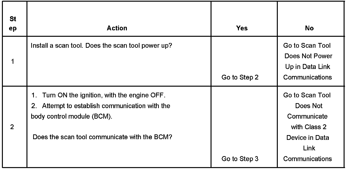 2. Lack of communication may be due to a partial malfunction of the class 2 serial data circuit or due to a total malfunction of the class 2 serial data circuit. The specified procedure will determine the particular condition.