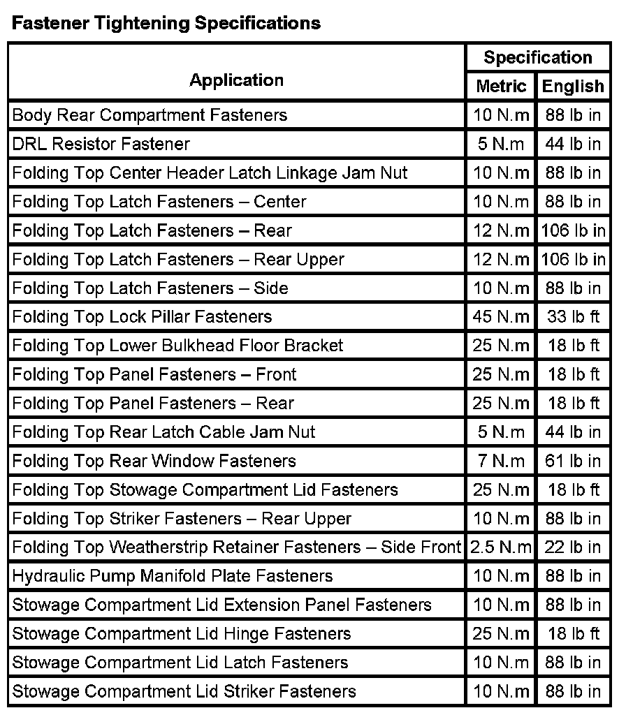 Convertible Top: Specifications