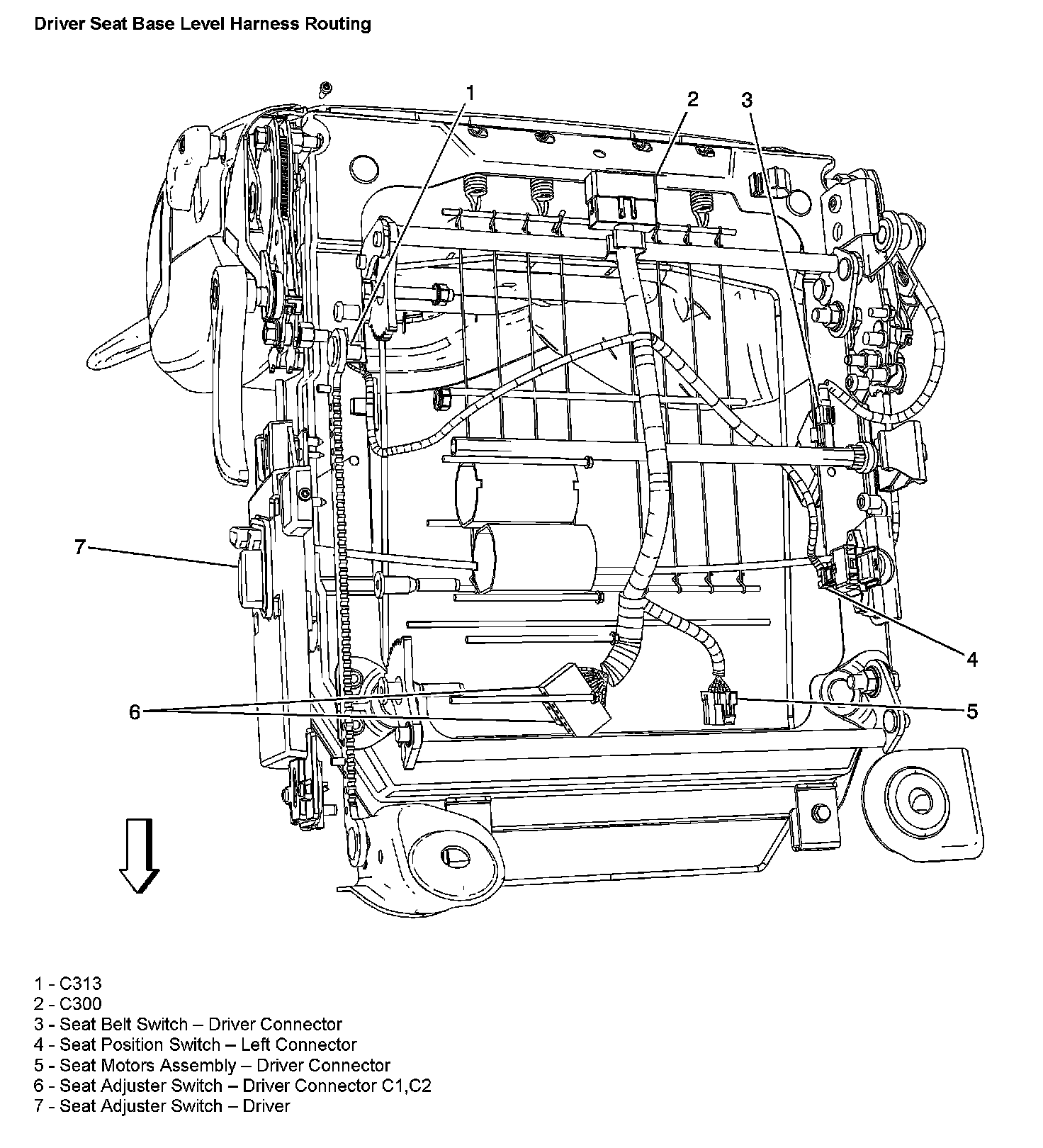 Driver Seat Base Level Harness Routing: