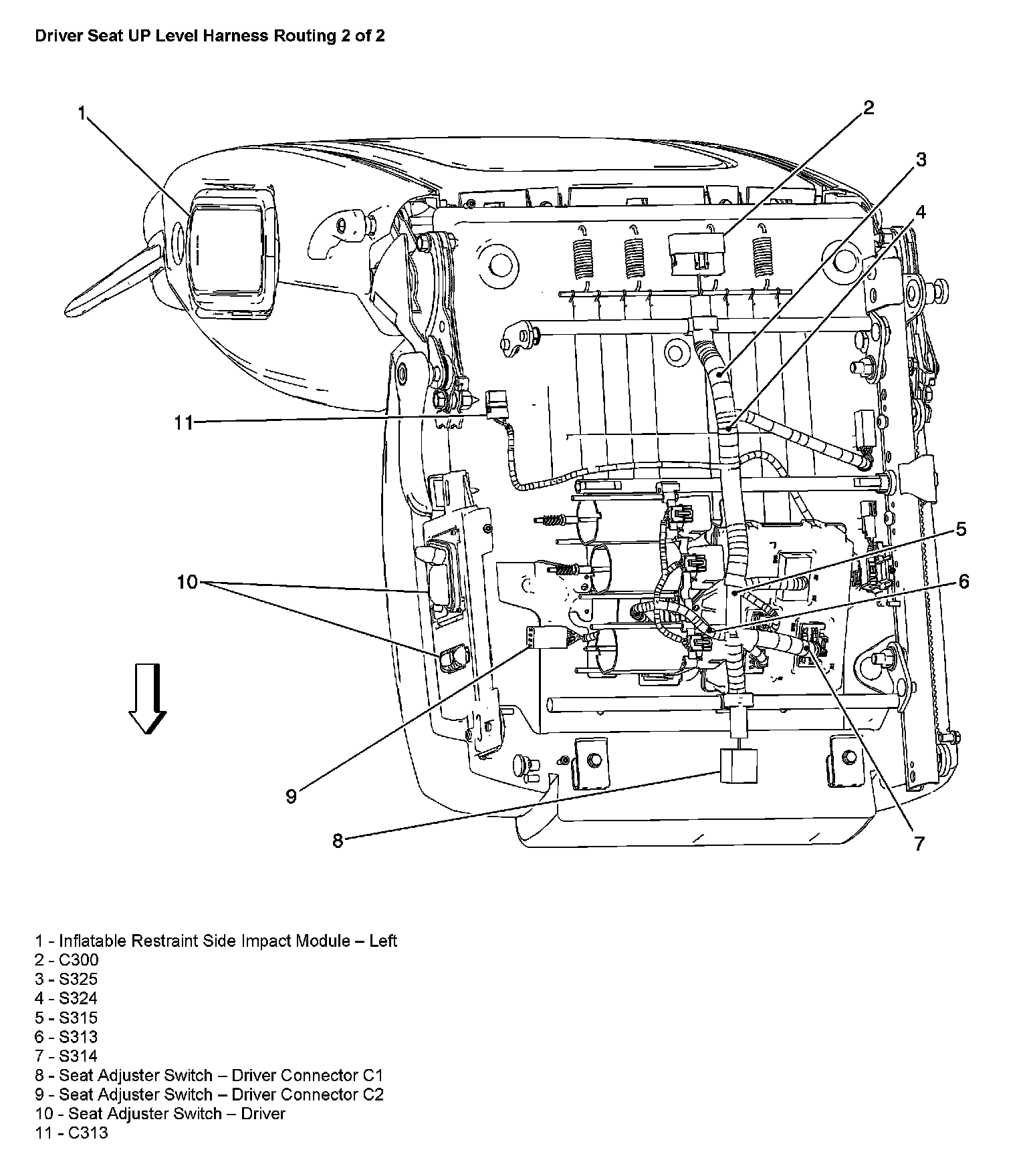 Driver Seat UP Level Harness Routing (2 of 2):