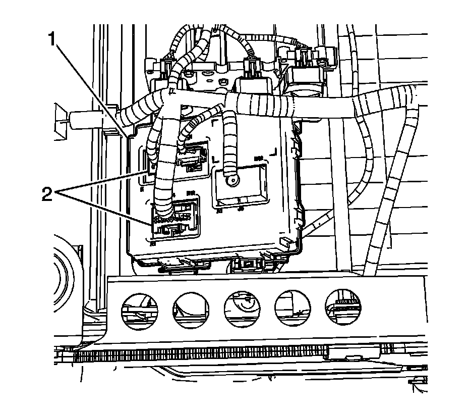 2. Disconnect the 4 electrical connectors (2) from the memory seat control module (1).